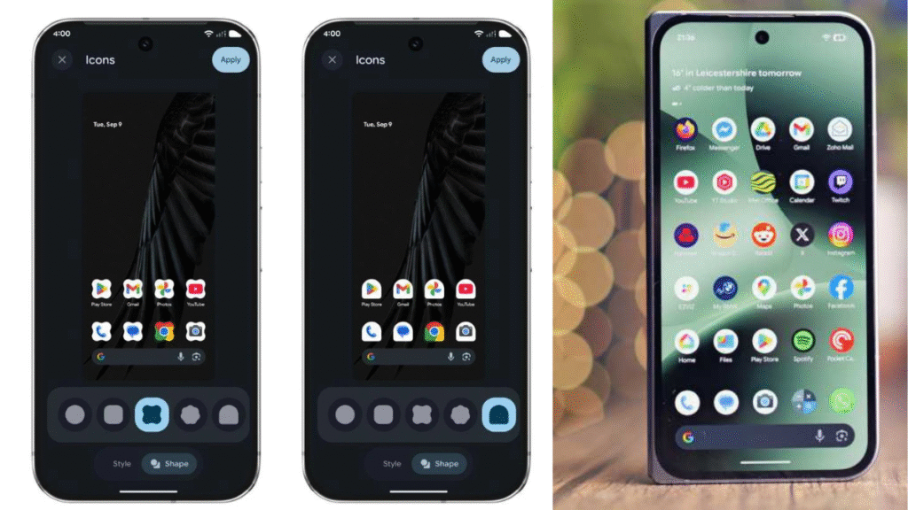 - सेटिंग्स > डिस्प्ले में “एक्सटेंडेड” ऑप्शन्स मिलेंगे, जैसे थीम्ड आइकन्स और फोर्स्ड डार्क मोड।