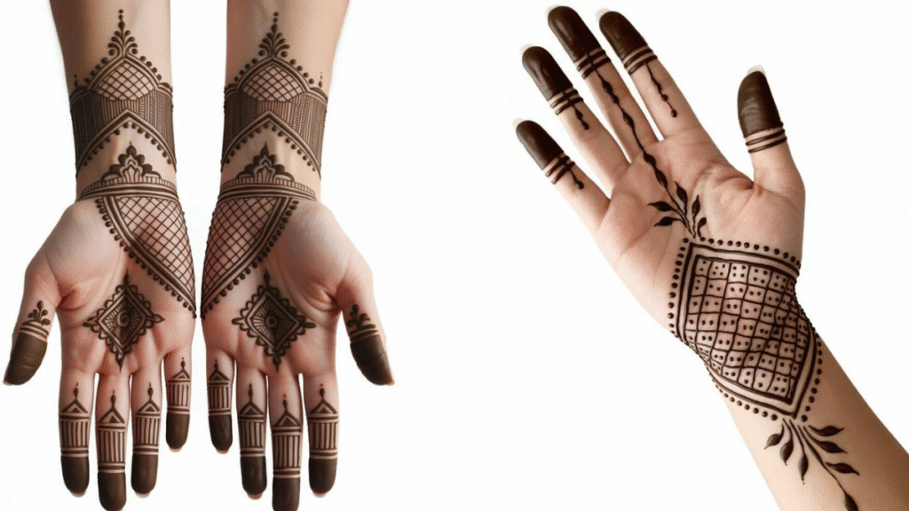 - फायदा: ये डिजाइन जल्दी सूखती है और ज्यादा मेहंदी नहीं लगती।