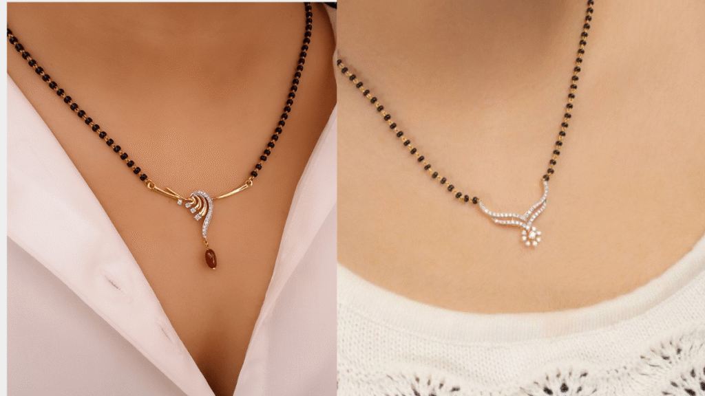 साथ छोटा सा पेंडेंट और कुछ काले मोती होते हैं। ये हल्के वजन वाले होते हैं (5-10 ग्राम), जिससे पूरे दिन पहनने में आराम मिलता है।
