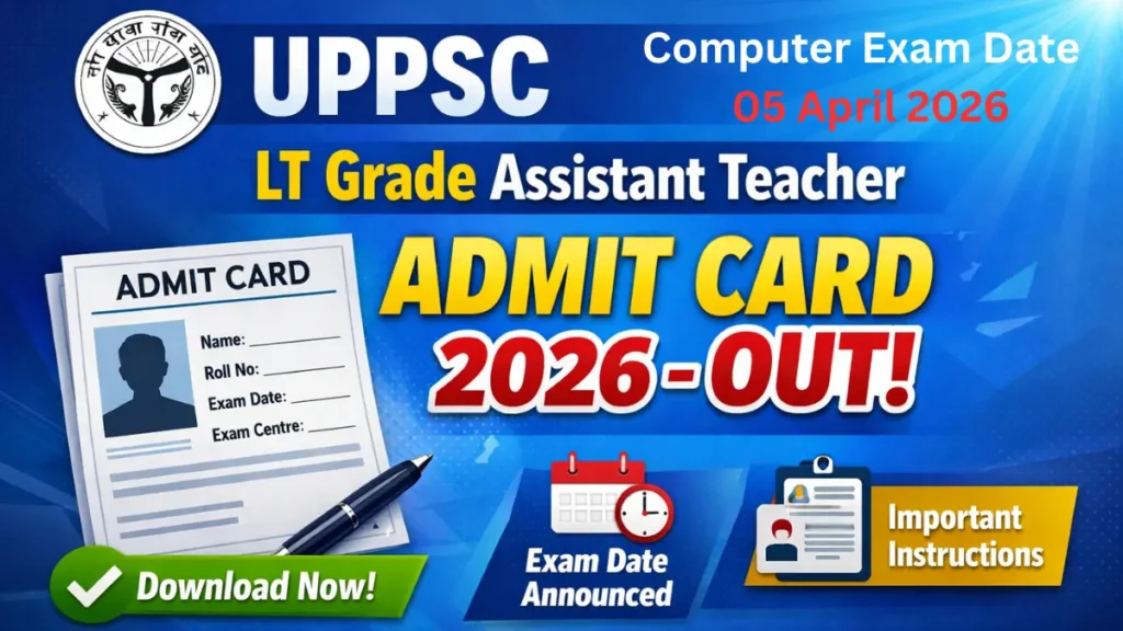 UPPSC LT Grade Assistant Teacher Computer Admit Card 2026 जारी हो चुका है और उम्मीदवार अब अपना hall ticket आसानी से डाउनलोड कर सकते हैं। इस आर्टिकल में आपको direct download link, exam date, important instructions और admit card से जुड़ी सभी जरूरी जानकारी मिलेगी। अगर आप इस भर्ती के लिए आवेदन कर चुके हैं, तो तुरंत अपना admit card चेक करें और परीक्षा की तैयारी तेज करें। यहां जानें step by step process और latest updates सबसे पहले।